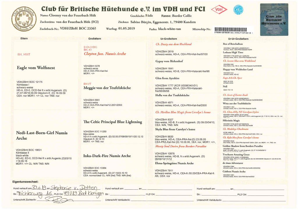 Zuchtbuchnummer: VDH/ ZBrH BOC 23365